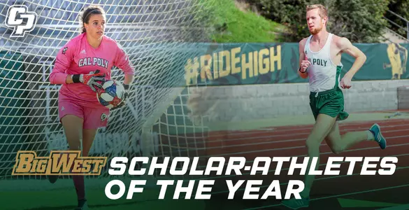 ANAHEIM, Calif. — Cal Poly senior Sophia Brown and junior Jake Ritter were announced as the Mustangs' Big West Conference Scholar-Athletes of the Year on Friday. Alongside 16 fellow recipients representing eight peer universities (chosen from a total of nearly 2,500 student-athletes throughout the Big West), Brown (a goalkeeper for the women's soccer team) and Ritter (a runner from the men's cross country and track squads) will be presented the awards at a banquet hosted by Anaheim Marriott Suites on Thursday, March 12.