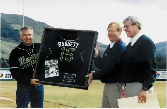 “President (Warren) Baker had just become the new president, and before him was a proposal to eliminate baseball,” said Baggett. “I heard about that, and of course I was very concerned. I set up a meeting with myself, Baker and Mike Krukow. We sat down and basically told him, ‘You just can't get rid of baseball. Baseball is a sport that Cal Poly can compete at nationally.’ ”